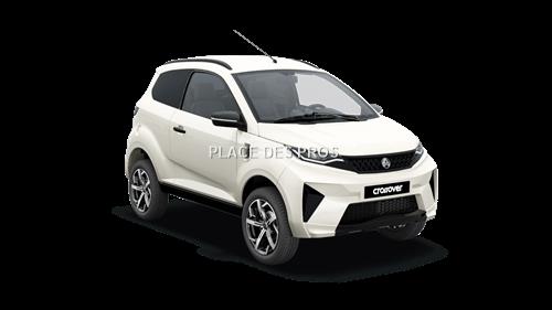 MOTEUR Moteur Electrique Cylindrée (cm3) - Puissance maximale kW 6 Couple (mN) 40 Carburant Electricité Batterie 7,44kW/h - lithium TRANSMISSION Transmission automatique par variateur Roues motrices avant Pont réducteur inverseur 1 rapport avant + neutre + 1 rapport arrière FREINAGE Système de freinage double circuit avec limiteur et rattrapage automatique d'usure des garniture Disques avant diamètre (mm) 220 Tambours arrière diamètre (mm) 160 SUSPENSIONS Type de suspension ressort HLE et amortisseurs hydrauliques à double effet Suspension avant roues indépendantes type pseudo Mac Pherson triangulée,ressorts hélicoïdaux Suspension arrière roues indépendantes, bras tirés, ressorts hélicoïdaux PNEUMATIQUES Dimensions des pneumatiques 155/65R15 CHÂSSIS ET VOLUMES Carosserie ABS acrylique sur structure aluminum Direction à crémaillère, rayon de braquage (m) 4 Nombre de places 2 Volume du coffre (L)* *Sans tablette avec cloison 641 DIMENSIONS HORS TOUT (MM) Longueur 3000 Largeur 1500 Empattement 2000 Voie avant 1345 Voie arrière 13